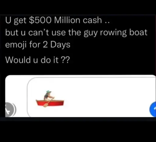 Nah, too risky. What if during those two days someone puts a gun to my head and tells me they’ll shoot unless I post the rowboat emoji? What if I’m stranded in the middle of a lake and need to communicate to an illiterate person that they should get their rowboat and come help me?
