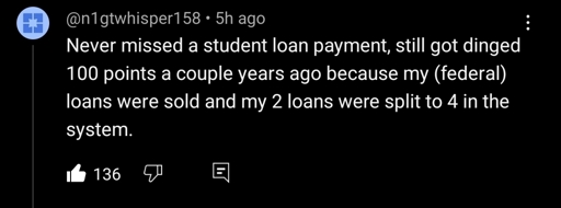 Yeah the system makes no sense. I got dinged -12 points this week for some reason, apparently for continuing to pay my student loans on time and using my one credit card for the exact same purchases I always do, which I likewise always pay off each month automatically.