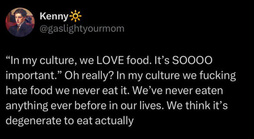 ByteOnBikes@discuss.online to Lemmy Shitpost@lemmy.world · 9 days agoMy culture also loves music, dancing and telling storiesdiscuss.onlineimagemessage-square289linkfedilinkarrow-up11.31Karrow-down123