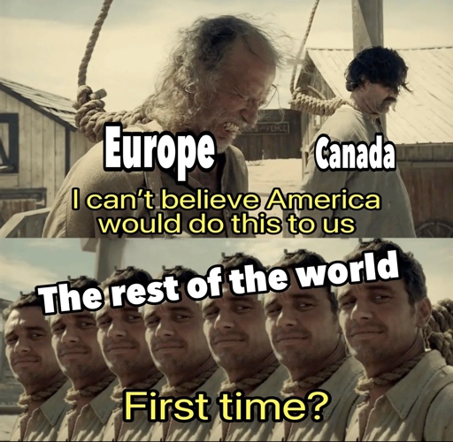 What, concretely, has america actually done to Europe and Canada though? It mostly just seems like trump saying dumb shit that insults their honor. I guess he’s done some tarrifs but that’s nothing compared to the bombings, regime change, extractivism, sanctions etc. that the rest of the world gets.