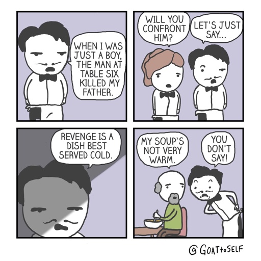 My name is Inigo Montoya. You killed my father. Now prepare for your dinner options: we have nice salmon risotto with a butter crème sauce, and for desert we have an exquisite crème boule. Would you like a minute to look over the wine selection?