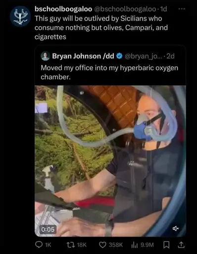 Outside of the common sense he’s tried various protocols and only continues them if the biomarkers they’re tracking show some kind of improvement. He’s spending his millions to test things and publish data for us to use, I don’t see any harm in that. He’s even published basic meals (Super Veggie) that anyone can make to ensure they’re eating healthy and getting the most bang for their buck (nutrient to caloric content ratio).
