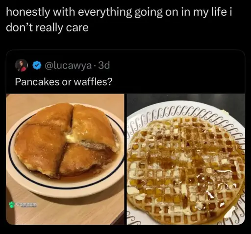 minus-squareOrteilGenou@lemmy.worldlinkfedilinkarrow-up2·6 days agoFrench style crepes, paper thin, with slices of ham and gruyere between them the first time, then maple syrup and/or whipped cream and berries the second time, to finish.