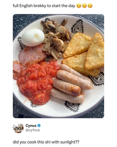 minus-squareAeonFelis@lemmy.worldlinkfedilinkarrow-up29·10 days agoDon’t be ridiculous. Where would they get sunlight in England?